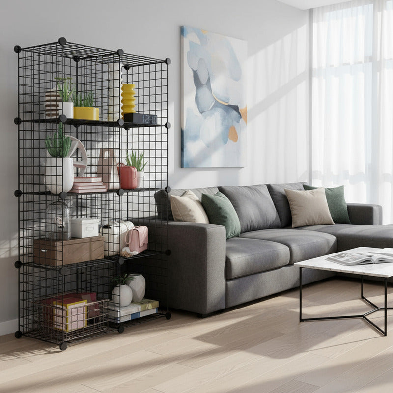 Mueble Estantería De Metal, 8 Estantes En Caja Negro