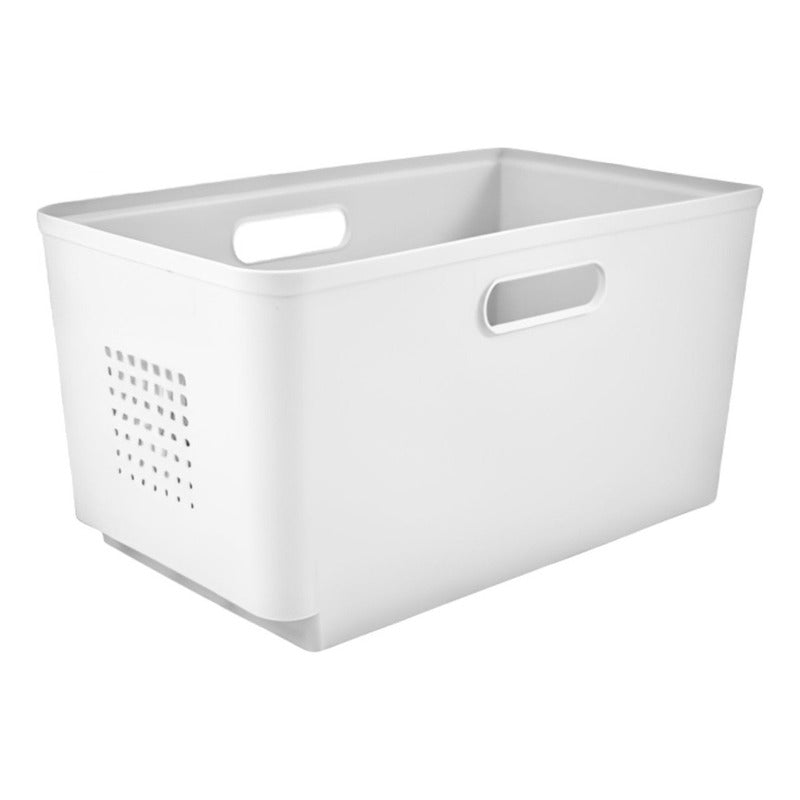 Canasto Caja Plástica Con Dos Ruedas 30x18x16cm Blanco